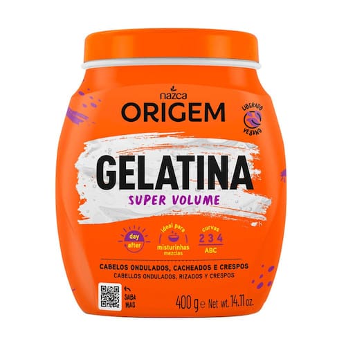 Gelatina Nazca Origem Super Volume 400g A Gelatina Nazca Origem Super Volume é perfeita para quem deseja cachos poderosos, leves e com muito volume. Desenvolvida para cabelos ondulados, cacheados e cr