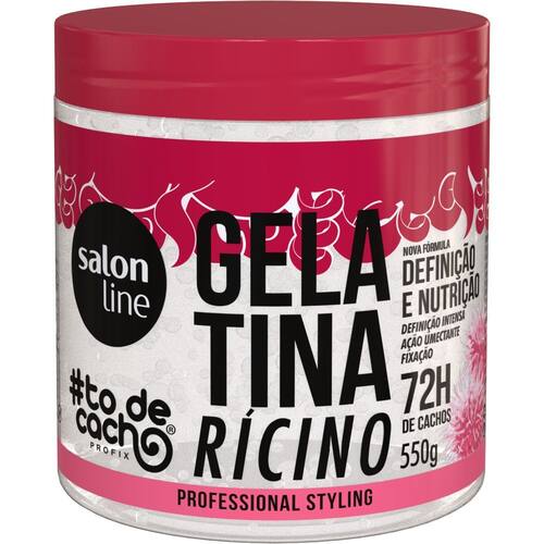 A Gelatina Salon Line To De Cachos Óleo De Rícino possui em sua formula o óleo de linhaça e glicerina vegetal para cabelo para garantir definição intensa da raiz às pontas, hidratação da fibra e brilho máximo. Além disso, conta com eficaz tecnologia PROXIX, que garante 72h de formatação, fixação e duração dos cachos e crespos!