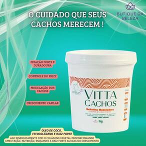 - modelagem com definição Misture a máscara ativadora vitta cachos à gellatina modeladora vitta cachos, na proporção 01 para 01, aplique nos cabelos úmidos, envolvendo todos os fios. Não enxágue. Modele os cachos como preferir. Marca: Não Informado