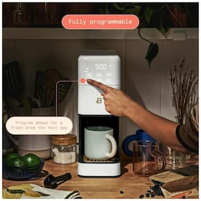 Conheça a Beautiful Perfect Grind, a cafeteira programável de dose única que une o sabor fresco do café moído na hora com a rapidez de preparo individual. Sua tecnologia exclusiva ExactXtract combina um moedor burr integrado com uma sequência calibrada de infusão e florescimento, extraindo até 2 vezes mais sabor do que sistemas convencionais de cápsulas, além de reduzir significativamente o desperdício plástico. Com seis tamanhos de xícaras — 180 ml, 236 ml, 295 ml, 355 ml, 414 ml e 473 ml — e três perfis de intensidade (Regular, Forte e Para Gelo), cada apreciador pode personalizar seu café perfeito. O amplo reservatório removível de 1,9 litros reduz a necessidade de reabastecimento frequente, e a bandeja de gotejamento ajustável acomoda copos de viagem com até 18 cm de altura. Programe o café para o dia seguinte facilmente no elegante display sensível ao toque ou desligue o moedor para usar café já moído, ideal para versões descafeinadas. Seu design compacto e elegante com acabamento fosco suave otimiza o espaço na bancada. A manutenção é simples graças ao filtro metálico dourado reutilizável, filtro de carvão ativado para a água e a escova 2 em 1 para medidor e limpeza. Seja para despertar durante a semana ou para um cold brew no fim de semana, a Beautiful Perfect Grind entrega perfeição em cada preparo.