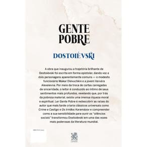 A estreia literária de Dostoiévski é um retrato tocante da vida nas camadas mais humildes da sociedade russa. Escrito em forma epistolar, o romance revela com delicadeza e profundidade a luta pela dignidade em meio às dificuldades do cotidiano. Com uma narrativa envolvente e sensível, Gente Pobre antecipa o olhar humano e a análise psicológica que consagrariam Dostoiévski como um dos maiores escritores de todos os tempos. Uma obra essencial para quem deseja conhecer as origens de seu gênio literário e refletir sobre a condição humana. Marca: Não Informado