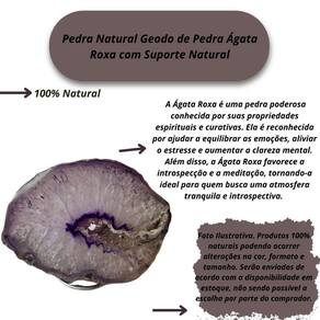 Geodo de Pedra Ágata Roxa com Suporte Natural Decoração Geodo de Pedra Ágata Roxa com Suporte Natural Decoração Adicione um toque de elegância e equilíbrio à sua decoração com o Geodo de Pedra Ágata Roxa com Suporte Natural. Esta peça única combina a beleza impressionante da Ágata Roxa com um suporte, criando uma harmonia perfeita entre a natureza e o design sofisticado. Cada geodo é uma obra-prima, formada ao longo de milhões de anos, com camadas profundas de tons roxos e padrões fascinantes que atraem todos os olhares. Benefícios: A Ágata Roxa é uma pedra poderosa conhecida por suas propriedades espirituais e curativas. Ela é reconhecida por ajudar a equilibrar as emoções, aliviar o e aumentar a clareza mental. Além disso, a Ágata Roxa favorece a introspecção e a meditação, tornando-a ideal para quem busca uma atmosfera tranquila e introspectiva. Colocada em seu espaço, ela não só decora, mas também cria uma energia positiva, estimulando a paz interior e a conexão espiritual. O suporte em que o geodo repousa confere uma base sólida e elegante, destacando ainda mais a beleza da pedra, enquanto mantém sua energia pura e intocada. Este Geodo com Suporte Natural é perfeito para quem deseja unir estética e funcionalidade, seja na sala de estar, escritório ou área de meditação. Enviamos a sua encomenda em até 24 horas após a confirmação do pagamento Caso tenha alguma dúvida nos mande mensagem que responderemos rapidinho para te ajudar Marca: Não Informado