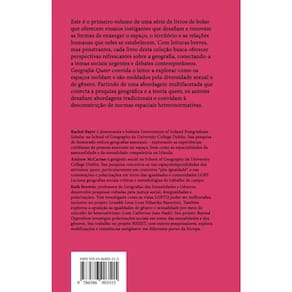 Este é o primeiro volume de uma série de livros de bolso que oferecem ensaios instigantes que desafiam e renovam as formas de enxergar o espaço, o território e as relações humanas que neles se estabelecem. Com leituras breves, mas penetrantes, cada livro desta coleção busca oferecer perspectivas refrescantes sobre a geografia, conectando-a a temas sociais urgentes e debates contemporâneos. Geografia Queer convida o leitor a explorar como os espaços moldam e são moldados pela diversidade sexual e de gênero. Partindo de uma abordagem multifacetada que conecta a pesquisa geográfica e a teoria queer, os autores desafiam abordagens tradicionais e convidam à desconstrução de normas espaciais heteronormativas.