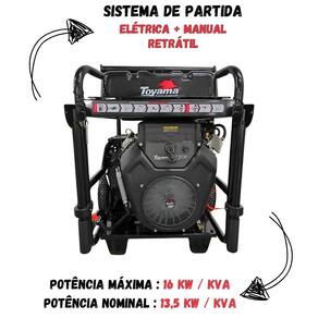 Partida elétrica e manual retrátil: Oferece mais conveniência ao usuário, permitindo acionamento rápido e sem esforço.
