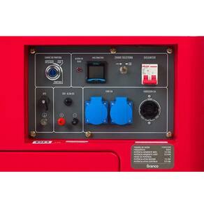 Motor 13,5 cv @ 3600 rpm Potência máxima 7,0 kVA A Diesel Tensão de saída Principal 110V/220V Controle de tensão AVR Carregador de bateria 12V / 8,3A Capacidade do tanque 10 L Autonomia (50% de carga) 7,7 horas Fases Monofásico Ruído (7 m) 72 dBA Dimensões do produto (CxLxA) (mm) 1040x505x750 mm Dimensões da embalagem (CxLxA) (mm) 950 x 595 x 835 mm Peso 175 kg