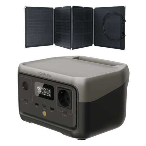 Kit EcoFlow composto por: 01 Gerador Energia River 2 110V 300W / 256Wh + 01 Painel Solar Portátil 60W