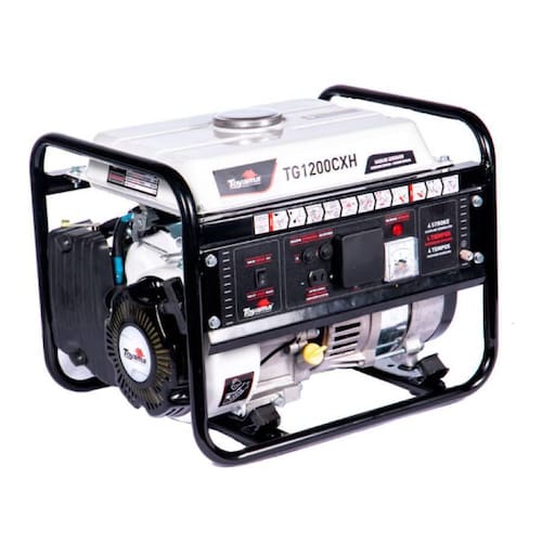 Gerador Toyama Gasolina Tg1200Cxh Monofasico 127V 1100W Partida Manual Com Sensor De Oleo Gerador de Energia 1,0 KVA Partida Manual TG1200CXH TOYAMA Gerador portatil a gasolina motor 4 tempos, proporcionando 1.000 watts de potencia em 110V. Possui carregador de bateria, quadro de proteção e voltimetro. Ideal para pequenas necessidades, como em área de camping, residências, podendo facilmente disponibilizar energia para acionamento elétrico de televisor, geladeira, lampadas, ventiladores, computadores, eletrodomésticos em geral e demais equipamentos que a potencia do gerador suporte. É a sua de energia para pequenas necessidades. Informações Técnicas: Código 200-001 110V Modelo: TG1200CXH Gerador a Gasolina Refrigerado a Ar Cilindros: Monocilíndrico Tipo de Motor: 4 Tempos Sistema de Partida: Manual Retrátil Motor: TE35GH Cilindrada: 96 cc Rotação Máxima: 3600 RPM Filtro de Ar: Duplo Elemento Capacidade do Tanque 6 litros Capacidade do Óleo: 0.4 litros Óleo Recomendado: 10W30 Potência Máxima: 1.1 kW | kVA Potência Nominal: 1.0 kW | kVA Numero de Fases: Monofásico Marca: Não Informado