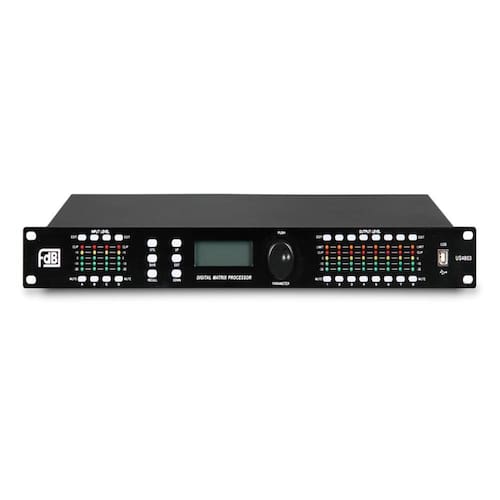 - Processamento das saídas com crossover, equalizado de 9 bandas, gain, mute, compressor/limiter, phase, delay, link e muito mais