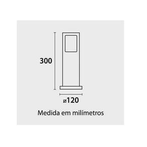 Poste Balizador Germany Garten 30cm E27 Bivolt Em alumínio, com pintura eletrostática a pó e componentes inoxidáveis Características Gerais do Produto: Dimensões AxLxP (mm): 300x120x120 Referência: 14110100-11 (Branco) Cor: Branco Fosco Garantia: 1 ano junto ao fabricante Grau de Proteção: ip 43 Local de Uso: Interno; Externo Material: Alumínio e Vidro Número de Lâmpadas: 1 Potência Máxima (por soquete): 60W Soquete: E27 Acompanha o produto: 1 Poste Balizador Manual de Instruções