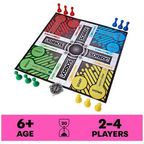 - GRANDES NOTÍCIAS: É o clássico jogo SORRY com uma grande reviravolta: peões gigantes e um tabuleiro de vinil grande e grande. Este é o mesmo jogo de tabuleiro retrô que você ama... feito maior e melhor