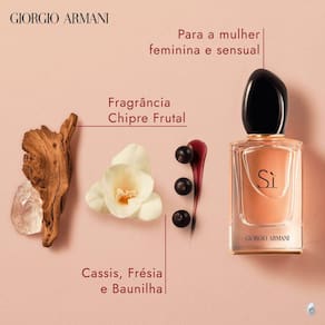 O Perfume Feminino Sì, de Giorgio Armani, é um sim ao sonho, ao amor, à liberdade e a você mesma. O perfume Sì dá espaço aos seus desejos, sua força e sensualidade, sem perder a elegância e a delicadeza das emoções. É uma fragrância elegante que estimula a mulher a ser quem ela é e ir atrás de suas vontades.