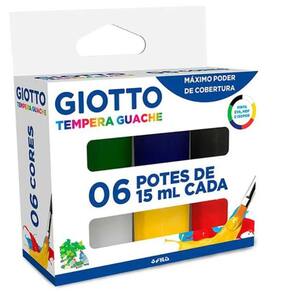Estojo de Tempera Guache Giotto com 06 CoresDescrição do produto:O Guache da Giotto é composto por materiais não tóxicos, que são resinas, água, pigmentos cargas e conservantes. Trazendo ótima qualidades e um círculo cromático muito amplo com 06 cores em seu estojo. As tintas não tem cheiro e podem ser lavadas nas mãos com água e sabão. Todas as cores podem ser misturadas. Essas tintas são perfeitas para qualquer atividade artística, seja na escola ou em casa.Detalhes do produto:- Quantidade: Estojo com 06 cores de 15ml cada.- Cores: Variadas- Selo de segurança: Registro 004 137/2017, INMETRO- Prontas para uso.- Marca: Fila Ean: 7896931806865