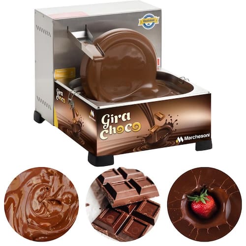 A Gira Choco da Marchesoni é ideal para uso comercial e em eventos. É indicada para buffets, festas, eventos, sorveterias, docerias, confeitarias e também para uso doméstico. Seu diferencial é o divertido efeito cascata, com uma deliciosa queda de chocolate ideal para fondue.
