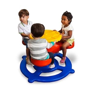 Conceito do antigo gira-gira de metal, não temático, sem formas de bichos, totalmente em plástico.