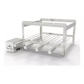 Especificações técnicas: modelo: 4 espetos material da estrutura: aço inox 430; motor: bivolt com chave seletora de voltagem 127v/220v ; posição do motor: esquerdo/direito escolher o lado no momento da compra . Peso por espeto: 2 kg serve até 25 pessoas dimensões: largura:51cm sem motor largura: 61cm com motor altura: 32 cm profundidade: 45cm comprimento do espeto: 65 cm 15 cm do cabo até a roldana, e 50cm da roldana até a ponta. Peso:6kg conteúdo da embalagem: - estrutura completa da churrasqueira giratória com motor. - 04 espetos tridente. - 01 manual de instruções. -kit parafusos