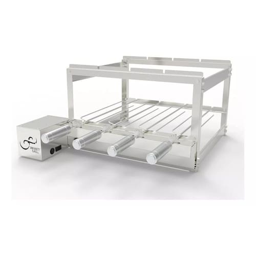 Churrasqueira grill - 4 espetos A linha de churrasqueiras giratórias oferece a função de espetos rotativos para uso em churrasqueiras a carvão de alvenaria ou pré-moldadas. São equipamentos elétricos bivolt chaveado .