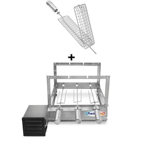 Kit Grill Inox Churrasqueira com 3 Espetos Tridente + Espeto Grelha