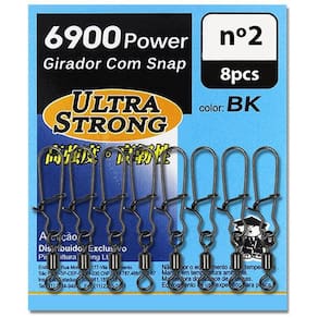 Girador com Snap 6900 Reforçado para Pesca V-Fox Tamanho: 2 Girador com Snap 6900 Reforçado para Pesca V-Fox Snap com Girador V-Fox 6900 Power Ultra Strong muito resistente e eficaz, tem como função evitar a torção da linha de pesca, aumentando vida útil do material da linha. O Snap é forte o suficiente para não abrir durante a briga com um peixe maior, além de apresentar praticidade na troca das iscas artificiais. Não se imagina a pesca esportiva sem a utilização desse pequeno acessório. Produto indispensável na sua maleta de pesca. Especificações: Incluso: 1 pacote - nº 2/0 Comprimento 6cm. Resistência: 90 kg. Snaps por Embalagem: 5un. - nº 1/0 Comprimento 5,5cm. Resistência: 80 kg. Snaps por Embalagem: 6un. - nº 1 Comprimento 5cm. Resistência: 58 kg. Snaps por Embalagem: 7un. - nº 2 Comprimento 4,5cm. Resistência: 50 kg. Snaps por Embalagem: 8un. - nº 3 Comprimento 4cm. Resistência: 41 kg. Snaps por Embalagem: 9un. - nº 4 Comprimento 3,7cm. Resistência: 33 kg. Snaps por Embalagem: 10un. - nº 5 Comprimento 3,3cm. Resistência: 26 kg. Snaps por Embalagem: 11un. - nº 6 Comprimento 3cm. Resistência: 20 kg. Snaps por Embalagem: 12un. - nº 7 Comprimento 2,7cm. Resistência: 13 kg. Snaps por Embalagem: 12un. Composição: Aço