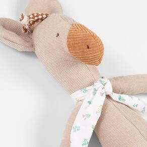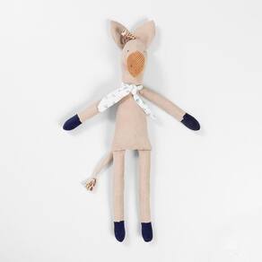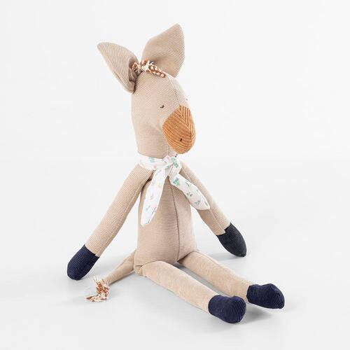 A Girafa Dani – Bege tem peluche veludo cotelê feito à mão, corpo bege elastano, patas azul marinho elastano, focinho caramelo, opção cachecol tricoline, antena e rabo. Charmoso e delicado.