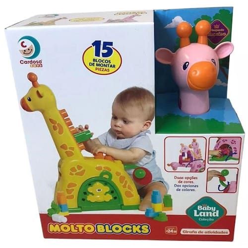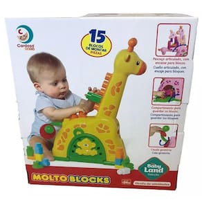 Conteúdo da Embalagem: 1 Brinquedo Girafa com 15 Blocos de montar