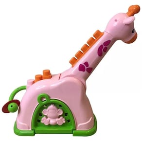 É um centro de atividades musicais com 15 blocos para molto pré-escolar, pescoço articulado, espaço interno para guardar os blocos, espaço no pescoço e lombo para encaixar os blocos e completar sua girafa.