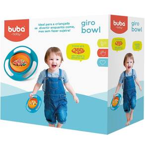 Giro Bowl Azul Buba- Não deixa o alimento cair Ideal para a criançada se divertir enquanto come, mas sem fazer sujeira. O Giro Bowl da Buba tem design moderno e diferenciado, não importa a posição em que é segurado, o bowl gira 360 graus de acordo com o movimento da criança, mas a parte interna continua sempre virada para cima, sem deixar o alimento cair. A linha de alimentação da Buba traz itens práticos que facilitam a vida das mães e acompanham as diversas fases da criança contribuindo para um crescimento saudável. Livre de BPA, Acompanha tampa higiênica, Material: Polipropileno, Garantia 3 meses contra defeito de fabricação. Medida do produto: 07x18x18(AxLxP)