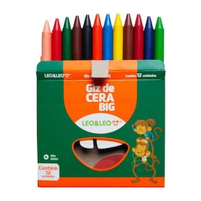 Giz de Cera Big Leo&Leo possui 12 cores vibrantes e seu grande diferencial é a facilidade no manuseio, ideal para trabalhos escolares infantis. Seu formato anatômico auxilia no desenvolvimento da coordenação motora.