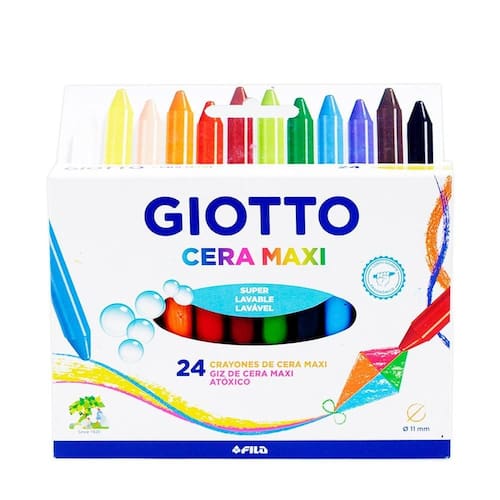 Giz de Cera Giotto Maxi 24 Cores 202203ES Com o giz de cera Maxi da Giotto a hora de colorir fica ainda mais divertida Ele possui 24 cores, é lavável, é ergonômico e atóxico. Perfeito para uso escolar.