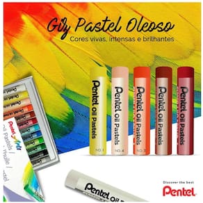 Giz pastel oleoso Pentel para desenhar com 12 cores. O giz pastel oleoso é ótimo para fazer esboços coloridos e trabalhos artísticos, principalmente em papéis de alta gramatura. Qualidade japonesa. • O giz pastel oleoso é ótimo para fazer esboços coloridos e trabalhos artísticos, principalmente em papéis de alta gramatura• Produz cores vivas, intensas, pastosas e brilhantes• Qualidade japonesa• Cor do produto: 12 Cores• Tamanho do produto: 12 Contagem (Pacote de 1)