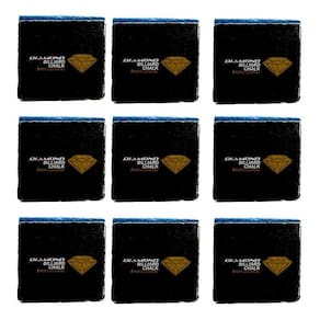 9 Peças de Giz Azul para Taco com Sola de Sinuca, Bilhar e Snooker. Produto importado similar a Master. Marca: Diamond Cor: Azul Medida da Pedra aproximada: 21x21x22mm Peso Aprox. 10g cada Indicada para amantes do esporte, possibilita maior desempenho e precisão em suas tacadas.