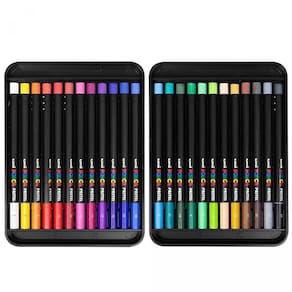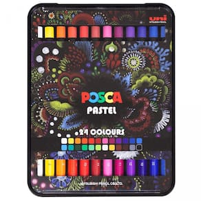 Giz Pastel Posca - 24 Cores Estojo plástico contendo 24 cores diferentes do Giz Pastel Oleoso Posca. Gizes Pastéis Oleosos de 12cm cada um em 24 cores diferentes, sendo elas: 1 Branco2 Amarelo3 Amarelo Brilhante16 Vermillion 15 Vermelho14 Bordô13 Pink11 Fúcsia 12 Violeta10 Azul da Prússia33 Azul48 Azul Céu 8 Azul Claro31 Verde Esmeralda18 Verde Oliva6 Verde 5 Verde Claro72 Verde Maçã54 Laranja Claro78 Ocre Claro 21 Marrom22 Marrom Escuro37 Cinza24 Preto Pode ser utilizado em diferentes tipos de materiais, principalmente em papéis de alta gramatura, e telas para pintura. Cores brilhantes com traço suave excelente sensação ao utilizar. As cores podem ser mescladas facilmente, garantindo uma variedade grande de tons. Resultados excelentes quando é utilizado em conjunto com outras técnicas como aquarela, tintas a óleo e outros tipos de giz. Resultados de longa duração, resistentes ao desgaste. Possui um longo período de secagem, possibilitando o trabalho por várias semanas em uma mesma obra. Características Técnicas: Dimensões aproximadas da caixa 15 x 12 x 3 cm Comprimento do Giz: 12cm Constituição do estojo: Plástico, acrílico, papel e papelão.