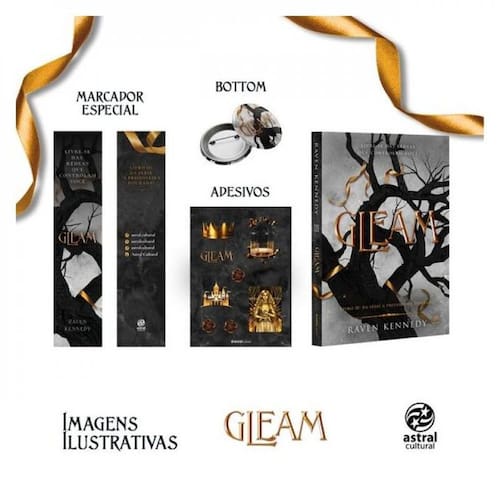 GLEAM, livro 3 da série A prisioneira dourada, fantasia que conquistou o TikTok. Perfeito para fãs de Sarah J. Maas e Jennifer L. Armentrout. REI MIDAS. Ele moldou quem sou hoje... Mas eu também o moldei. Escapei da minha gaiola dourada, e, se quero continuar livre, terei de fazer uma escolha. O problema é que essa escolha se tornou difícil demais. Slade Ravinger é uma complicação com a qual não consigo lidar agora, e o arrependimento e a vingança estão fervendo dentro de mim. E tudo irá explodir em breve e alguém irá se machucar. Mas, desta vez, não serei eu. Retorne para o mundo de Orea, onde reis são mentirosos e toda magia tem um preço. A série A prisioneira dourada está recheada de intriga e romance, em que o ouro irá mostrar o derradeiro valor da ganância.