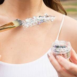 A aderência do glitter à pele ou a superfícies como isopor requer a utilização de produtos como cola, maquiagem ou cremes corporais.