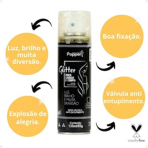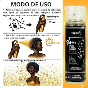 Destaque-se em qualquer ocasião com o Spray Glitter Mágico! Com partículas ultrafinas de brilho intenso, este spray transforma qualquer look em segundos. Fácil de aplicar e remover, é ideal para festas, fantasias, carnaval e eventos especiais. Sua fórmula hipoalergênica e de secagem rápida garante um efeito duradouro sem danificar os fios ou a pele.