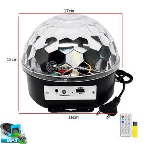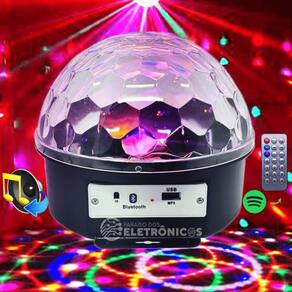 INFORMAÇÕES TÉCNICAS: Material feito através de um globo de acrílico, tornando o ambiente super iluminado. Tipo de efeitos: Circo giratório bolas com frequências de mudanças de cor cores ilustrativas. Possui 90 lentes em seu domo colmeia gerando incríveis 540 pontos de feixes luminosos. Super Compacto e pratico, perfeito para discotecas, clubes, festas, baladas e etc.. Funções Controle remoto: Apenas para aumentar e diminuir som do Quando conectar USB não há funções de mudança de LED Ângulo de cobertura aproximadamente: 138 graus / Potência: Alimentação: DC - 110-220v. 50/60hz - Bivolt 2 Auto Falantes Laterais: 6w RMS 3w + 3w Efeitos De Luz: De Alto Desempenho. Tipo: Globo Giratório com Bluetooth, USB MP3. Tamanho: 17cm x 16cm x 15cm Material : Plástico