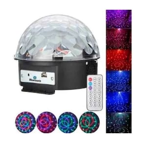 Especialmente projetado para criar feixes luminosos, fortes e condensados Com Bluetooth Conecte um SD ou USB e faça a festa Baixo consumo de energia Plug & Play Ângulo de trabalho de 138º Recomendado para festas e eventos Design moderno em formato de meio globo Possui furos para fixação Projeção LED multicolorido Vermelho, Verde, Azul, Branco, Pink, Laranja 06 Leds de alto brilho Modo Automático Programável Fade, Strobo Colorido, Mista e Single Funciona pela Batida da Música via sensor Funciona no modo automático Carcaça de plástico