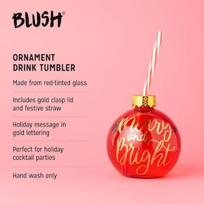 - Blush Enfeite copo de bebida com canudos para o Natal - 400 ml estilo vintage decoração de festa de Natal globo de vinho com faixa de hortelã-pimenta, suprimentos para festa