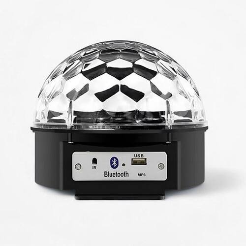 Globo de luz led rgb musical bluetooth usb mp3 bola maluca Cor: preto Transforme qualquer ambiente em uma verdadeira balada com o globo de luz giratório led, ideal para festas, aniversários e eventos. Fabricado em plástico de alta qualidade, ele possui 6 leds internos que totalizam 18w, oferecendo uma iluminação vibrante e impactante.