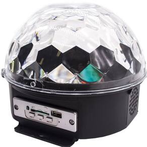 Globo De Luz Led Magic Ball 6 Cores Magic Ball Led Light Possui Em Seu Interior 6 Leds Coloridos Rotativos Que Proporcionam Sensacionais Efeitos De Luz, Seu Domo Transparente Foi Especialmente Projetado Para Criar Feixes De Fortes E Condensados Ao Mesmo Tempo Que Ilumina O Ambiente. Possui 90 Lentes Em Seu Domo Acrílico Gerando Incríveis 540 Pontos Luminosos. Esta Bola Maluca Vem Com Várias Funções: Strobo, Fade, Modo Colorido Projetor Holográfico, Efeitos Mistos, Single E Sensor De Som. A Led Magic Ball Light Acompanha Um Pen Drive Com Músicas Gravadas E Controle Remoto, Além De Entrada Para Cartão De Memória De Até 32gb. Possui Alto Falantes Internos, Basta Inserir O Pen Drive Ou Cartão E Escutar As Musicas, Não É Necessário Ter Outro Aparelho De Som, Possui Um Ótimo Som Para Pequenos Eventos E Festas. Informações Técnicas 2 Auto Falantes De 6w Rms 3w + 3w Produto Fabricado Em Plástico Abs Sensor Rítmico Acompanha A Batida Da Música Alimentação Bivolt Automático Ac 110 / 220 V Medidas Aproximadas Do Produto 175x155x175 Mm Medidas Aproximadas Da Embalagem 21x21x18 Mm Peso Aproximado 0,910 Kg Conteúdo Da Embalagem: 01 Magic Ball Led - 01 Pen Drive - 01 Controle Remoto Ean: 7897641231046