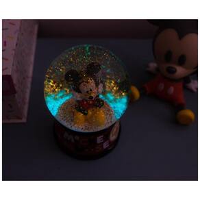 Dê um toque mágico ao seu espaço com este globo de neve iluminado que destaca o icônico Mickey Mouse sentado de pernas cruzadas. A base em cerâmica apresenta o nome "Mickey Mouse" e ao acionar o interruptor, o globo emite um brilho colorido e cintilante com glitter que flutua ao redor da figura. Alimentado por baterias (incluídas), é uma peça nostálgica e colecionável que encanta fãs e decora com charme o ambiente, seja na mesa, prateleira ou lareira.
