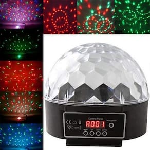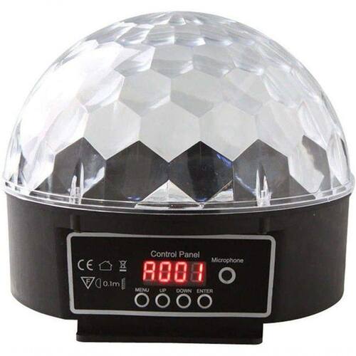Acrílico Tipo Colméia Medidas do Produto : 170 x 175 x 155 mmPeso Aproximado : 0,657 KgVoltagem BIVOLT Automático 110/220 VoltsÂngulo de Abertura Máxima 150 Efeitos de 6 LEDS Coloridos de 3 WattsPotência 18/21 Watts Modos de Reprodução Auto, Sensor de Som e Slave Efeito Holográficos Estroboscópicos, Velocidade e Brilho Ajustável DMX 10 Canais