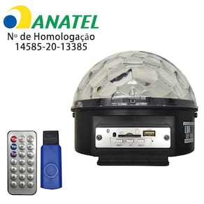 Globo bola magica 6 cores de luz led rgb com controle remoto e bluetooth, entrada usb. Vem com pendrive.