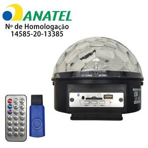 Globo bola magica 6 cores de luz led rgb com controle remoto e bluetooth, entrada usb. Vem com pendrive.