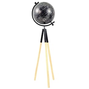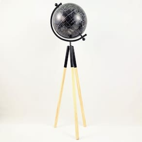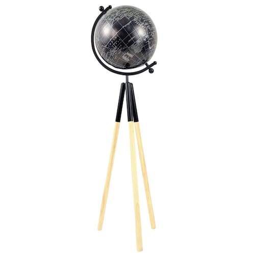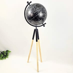 Globo Terrestre Decorativo Tripé Preto 80x23cm