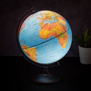 Conta com dupla cartografia: uma do mapa físico quando ele está apagado e uma do mapa político quando está aceso, sendo dois globos em um, além de servir como item para estudos serve como decoração para sua casa ou a sua mesa de trabalho, além de ser um presente perfeito para aquele seu amigo viajante.