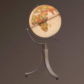 Com aproximadamente 50cm de diâmetro e uma altura total de 106cm (incluindo o suporte com pés), este globo é uma peça de destaque que certamente chamará a atenção.