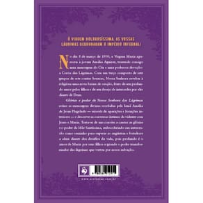 Ó VIRGEM DOLOROSÍSSIMA, AS VOSSAS LÁGRIMAS DERRUBARAM O IMPÉRIO INFERNAL! No dia 8 de março de 1930, a Virgem Maria apareceu à jovem Amália Aguirre, trazendo consigo uma mensagem do Céu e uma poderosa devoção: a Coroa das Lágrimas. Com um terço composto de sete grupos de sete contas brancas, Nossa Senhora revelou à religiosa uma nova forma de oração, fruto de seu profundo amor pelos filhos e de seu desejo de interceder por eles diante de Deus. Glórias e poder de Nossa Senhora das Lágrimas reúne as mensagens divinas recebidas pela Irmã Amália de Jesus Flagelado através de aparições e locuções interiores e descreve as conversas íntimas da vidente com Jesus e Maria. Trata-se de um convite a cantar as glórias e o poder da Mãe Santíssima, redescobrindo sua intercessão como caminho para superar as angústias e fortalecer a alma diante dos desafios da vida, pois profundo é o amor de Maria por seus filhos e grande o poder transformador das lágrimas que verteu por nossa salvação.
