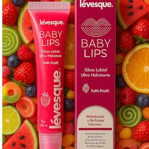 O Baby Lips da Lévesque é um gloss labial ultra hidratante, desenvolvido para proporcionar brilho, maciez e uma sensação agradável nos lábios. Sua fórmula combina ácido hialurônico, ativos naturais como o óleo de maracujá e o rarite, além de componentes nutritivos como o colágeno e o pantenol. Ideal para uso diário, deixa os lábios com aparência saudável, acabamento luminoso e um toque de cor delicado com fragrância Tutti-Frutti.