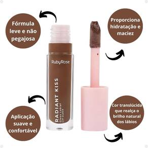 O Gloss Labial Radiant Kiss oferece um toque de brilho sofisticado com um delicado tom de marrom escuro translúcido. Sua fórmula leve e não pegajosa proporciona uma aplicação suave e confortável, enquanto a cor translúcida realça o brilho natural dos lábios. Proporcionando hidratação e maciez, este gloss deixa os lábios radiantes, capturando a luz de maneira deslumbrante. Ideal para um acabamento luminoso, o Radiant Kiss RK60 garante um visual irresistível e de alta definição, perfeito para qualquer ocasião.