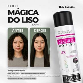 O Gloss Mágica do Liso Hair Extrattus foi especialmente desenvolvido para cabelos naturais ou quimicamente tratados que precisam de redução de volume, controle de frizz e um efeito liso duradouro. Sua fórmula poderosa contém ativos como vinagre, colágeno, sericina, cisteína, extrato de chia, óleo de linhaça e um blend exclusivo de ácidos que selam as cutículas e garantem fios disciplinados, macios e com brilho intenso. Esse tratamento promove uma selagem capilar restauradora, eliminando a sensação de rigidez e domando os fios rebeldes, deixando o cabelo progressivamente mais liso, alinhado e com toque sedoso. Ideal para quem busca um acabamento com efeito de salão no conforto de casa. Marca: Não Informado